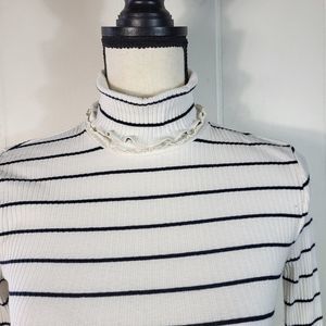 JCREW White Black Ribbed Striped Thin Turtleneck Sweater Size XXSmall