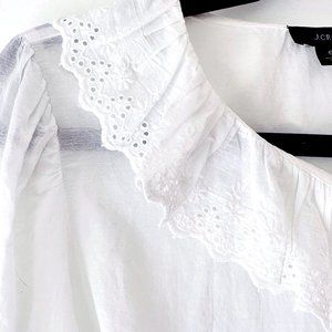 JCREW White Cotton Embroidered Ruffle Collar Top with Eyelet Size 6