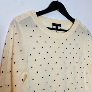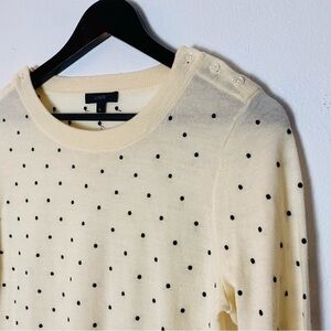 JCREW Womans Crew Neck Marino Wool Sweater Ivory/Black Polka Dot Size Small