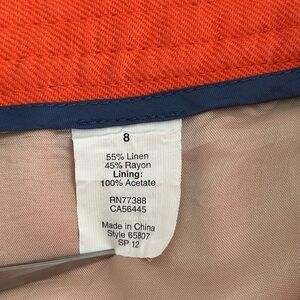J.CREW Women’s Linen Blend Skirt 8 Button Front Lined Pockets Bright Orange Sz.8