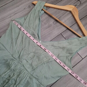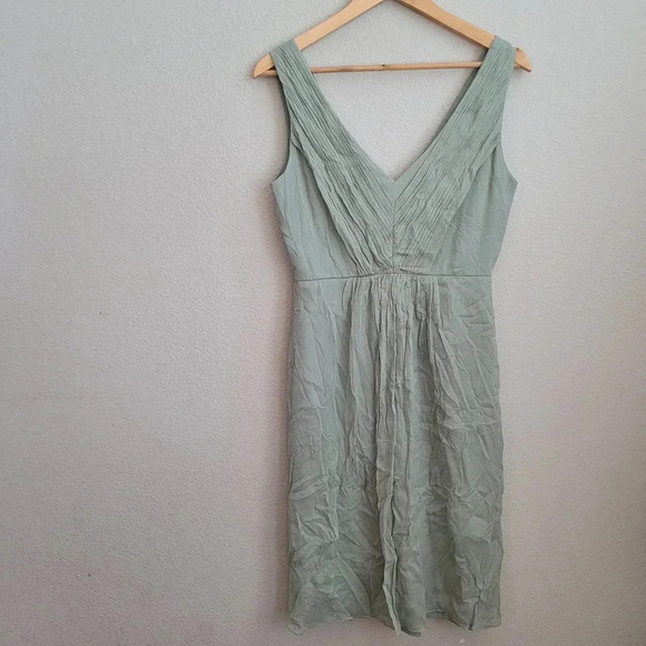 J.CREW Women's Mini Heidi Dress 4 Green Solid 100% Silk Ruffle Sleeveless V-Neck.