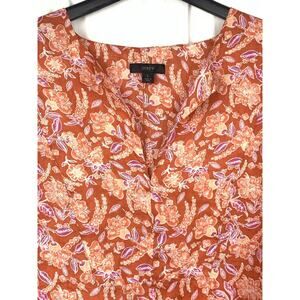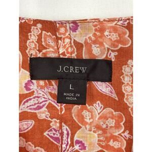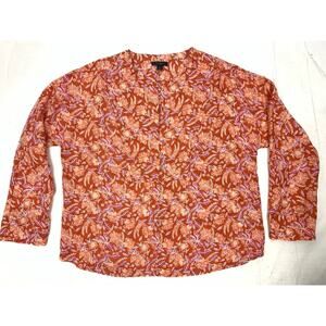 J.CREW Women’s Orange Floral Long Sleeve Ramie Tunic Top in Painted Block Size L