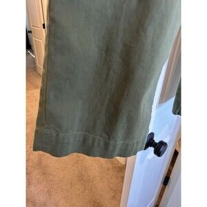 These J.CREW Women's Re-Imagined Olive Green Pants in size 28 offer a stylish and versatile option for various occasions. The wide straight leg design and mid-rise fit provide a flattering silhouette, while the ankle length and flat front detail add a modern touch. Made from comfortable cotton material, these pants feature a zipper closure and convenient pockets for added functionality. Perfect for travel, casual outings, workwear, or business settings, these olive green pants from J.CREW are a must-have addition to any woman's wardrobe.