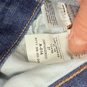 The J.CREW Women's Size 27 9" Toothpick Stretch Skinny Blue Jeans are a stylish and versatile addition to any woman's wardrobe. Featuring a high-rise waist and a slim fit, these jeans are designed for a flattering and comfortable look. Made from a blend of spandex, lyocell, and cotton, these jeans offer stretch for added flexibility and durability. With a classic 5-pocket design and a zip fly closure, these jeans are perfect for everyday wear in any season. The dark wash and solid blue color make them easy to pair with a variety of tops and shoes.