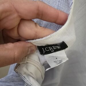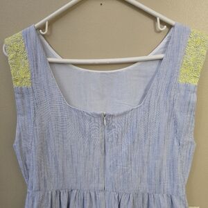 J. Crew Siesta Linen Striped Sheath Dress Women's 4 Embroidered Preppy Old Money This stylish women's sleeveless top features a light gray color with eye-catching yellow accents. Perfect for casual outings or a day at the office pre-owned good condition
