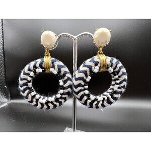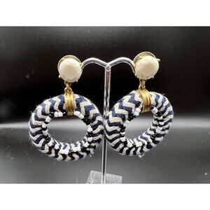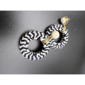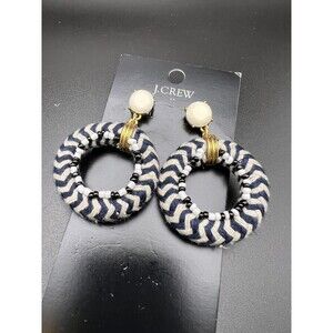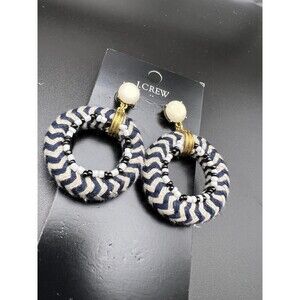 J.Crew circle earrings that are wrapped in a chevron pattern and circled in delicate beads. On posts with an ivory stone.