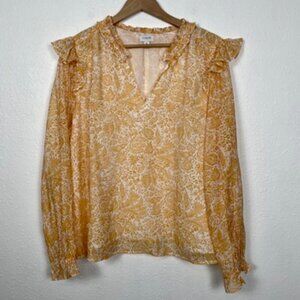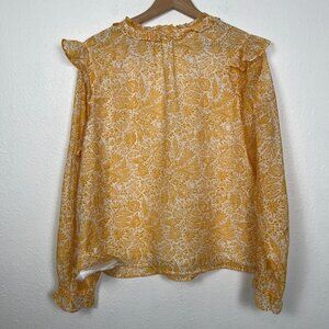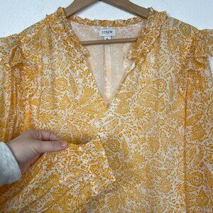 JCREW Yellow Floral Ruffle Top Balloon Sleeve Blouse