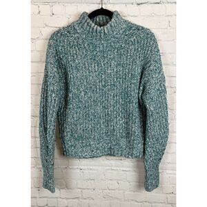 J.CREW blue melange rib knit cotton blend oversized sweater pullover size S