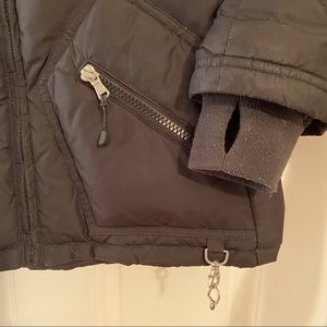 Comfortable snugged down feather JCREW puffer jacket. Great for the fall or winter with abundance of pockets. Removable hood for a more stylish look.