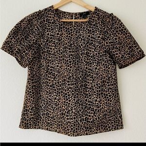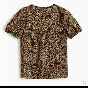 J CREW Animal Print Puffed Sleeve Ruffle Top