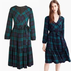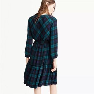 J. CREW Black Watch Plaid Drapey Long Sleeve Dress