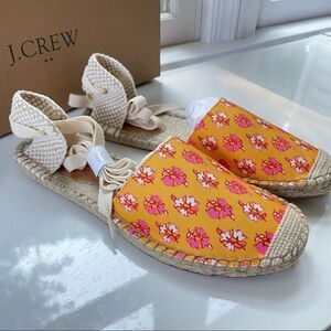 J. CREW Printed canvas ankle-wrap espadrille sandals Pale Guava Block size 8 NEW