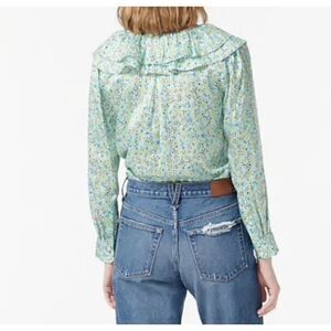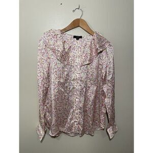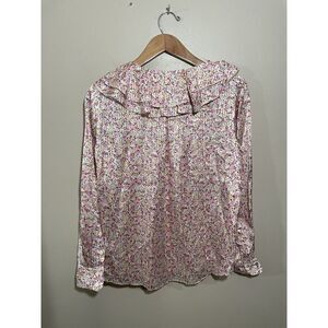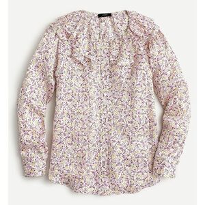 J.CREW Ruffle Blouse Top Small Field Day Shirt Dainty Floral Pink Gold AW869 NWT