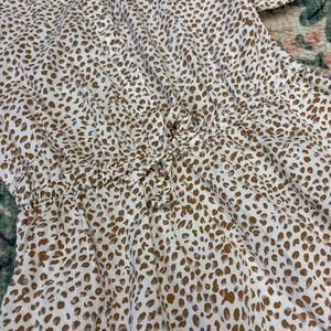 Stylish patterned dress with a classic collar. Features a flattering fit and short sleeves. Ideal for versatile wear. Wait tie and animal cheetah leopard print with puff sleeves