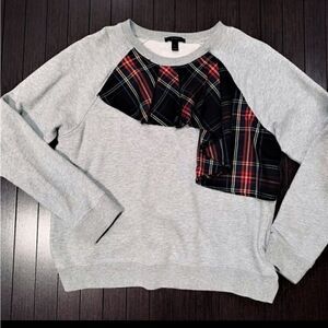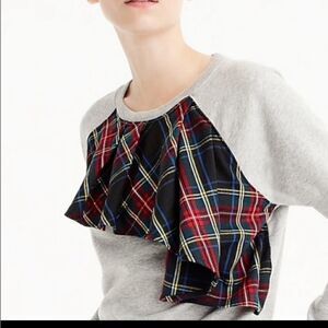J CREW Sweatshirt With Tartan Plaid Ruffle
