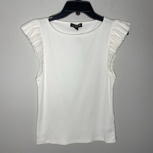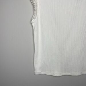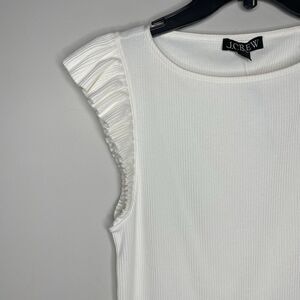 J.CREW Tank Top Women Medium Ivory Vintage Rib Ruffle Tee NEW Boatneck BY423