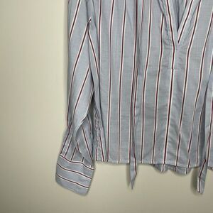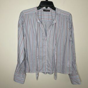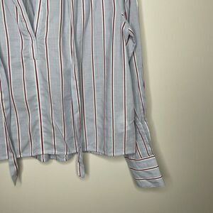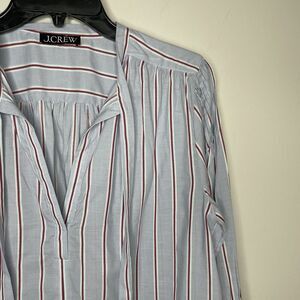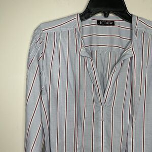 J.CREW Top Women Small V-Neck Tie Blouse Blue Striped Cotton Blend Dobby CA590