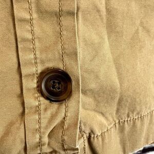 Keywords: J.CREW, A-line skirt, knee-length, beige skirt, cotton twill, casual wear, women's fashion, button accents, pockets, machine washable, pre-owned.