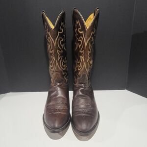 J. Chisholm men's brown leather western cowboy boots. Size 10 EE . Step out in style with these brown leather cowboy boots. Perfect for any occasion, these boots offer both comfort and durability. Some wear as shown.