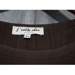 J’Coûte Cher Paris Brown Ribbed Long Sleeve Stretch Top Size L