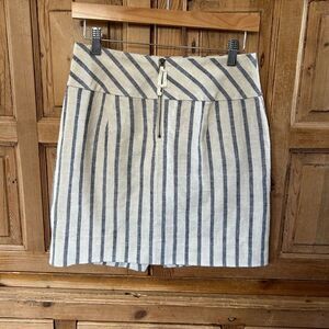 J.Crew 0 Skirt Blue White Stripe Linen Textured Zipper Mini Crossover Wrap Front