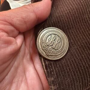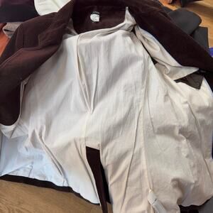 Rich espresso brown corduroy blazer by J.Crew, crafted in 100% cotton with a silky striped inner lining. Features a single-button front closure, notched lapels, two front flap pockets, and light shoulder structure for a tailored yet relaxed silhouette.