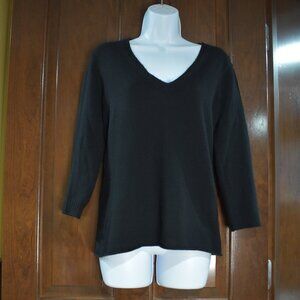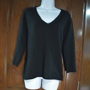 J.Crew 100% Cashmere Black V-Neck Sweater Size Large Classic & Cozy