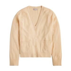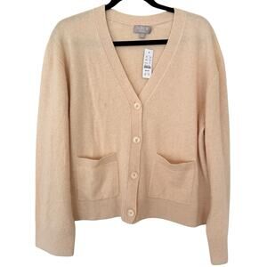 J.Crew 100% Cashmere Cardigan Sweater Beige Front Pockets Medium NWT