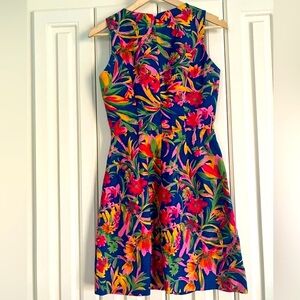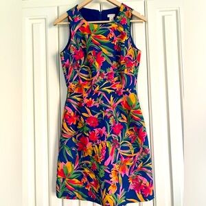 J.Crew 100% Cotton Colorful Tropical Sleeveless Lined Shift Dress Size 00