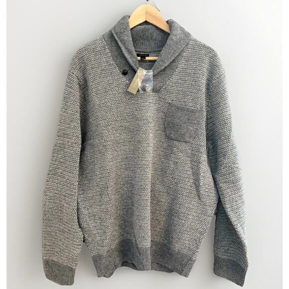 J.Crew 100% Lambswool Knit Shawl Collar Sweater Mens L Heather Gray FLAW