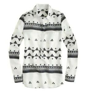 J. Crew 100% Linen Long Sleeve Camp Popover in Roller Girl