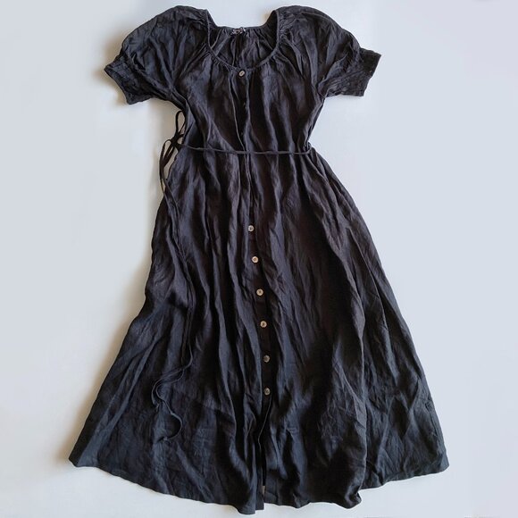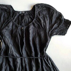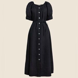 J.Crew 100% Linen Tunic Midi Dress Black Short Button Up Size XS Side Pockets