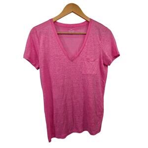 J.Crew 100% Linen V-Neck T-Shirt Pink Size M Women
