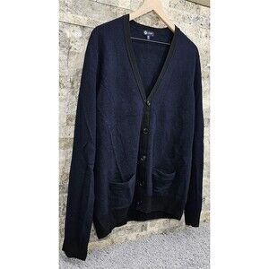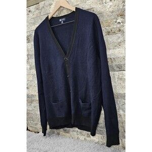 J.Crew 100% Merino Wool Cardigan Sweater Navy Blue Mens L Pockets Grandpa Preppy