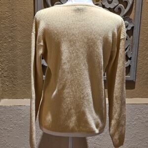 J.Crew 100% cashmere pullover in neutral beige cream. Rib knit, lightweight yet warm—classic luxe staple for fall/winter.