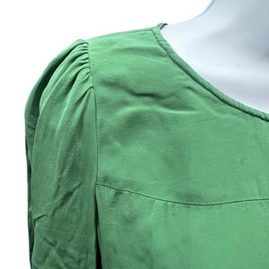 J.Crew 100% Silk Green Blouse Size 6 Long Sleeve Button Cuff Elegant Top