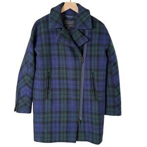 J.Crew 100% Wool Plaid Tartan Coat Full Zip in Blue Green Black, Size 2