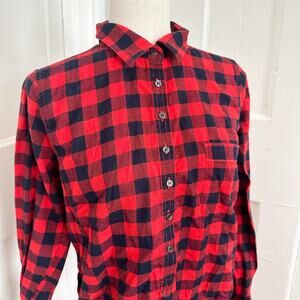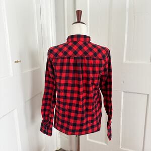 Super cute 1/2 button-up shirt from J Crew. Red & cream white flannel checkered collared plaid print with a front pocket. "Perfect Fit" style. Worn once and in excellent condition.