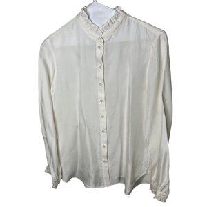 J.Crew $138 Drapey Ruffle Trim Shirt Size S Ivory BL642