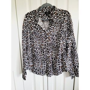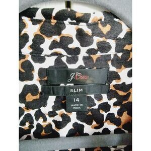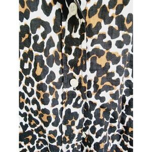 J.Crew 14 Button-Up Shirt in Leopard Print Brown Blouse Linen/Cotton.