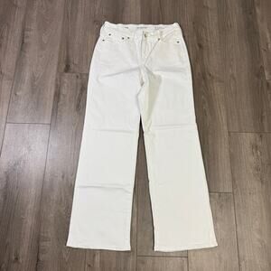 J.Crew 1996 Low-Rise Full-Length Slim Wide-Leg Jeans Women’s Size 26 – Style# CH843, White Denim, Low-Rise Waist, Slim Fit Through Hip and Thigh, Gently Flared Wide-Leg Silhouette, Full-Length Inseam, Soft Stretch Denim for Comfort and Flexibility, Clean Hem, Ideal for Modern Casual Looks, Warm Weather Styling, or Minimalist Wardrobes.