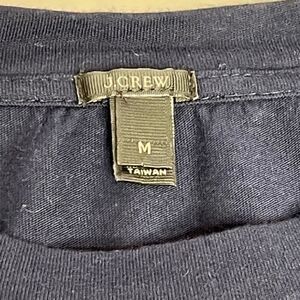 J. Crew 3/4 sleeve navy blue top with green and white striped sleeves size M. Size care missing. Good condition. Length 25” Chest 19”.