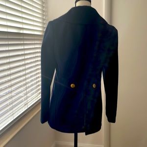 Cold weather is coming and this navy blue medium weigh J Crew pea coat would be perfect for all your outings. This coat has beautiful gold buttons in the front and back.