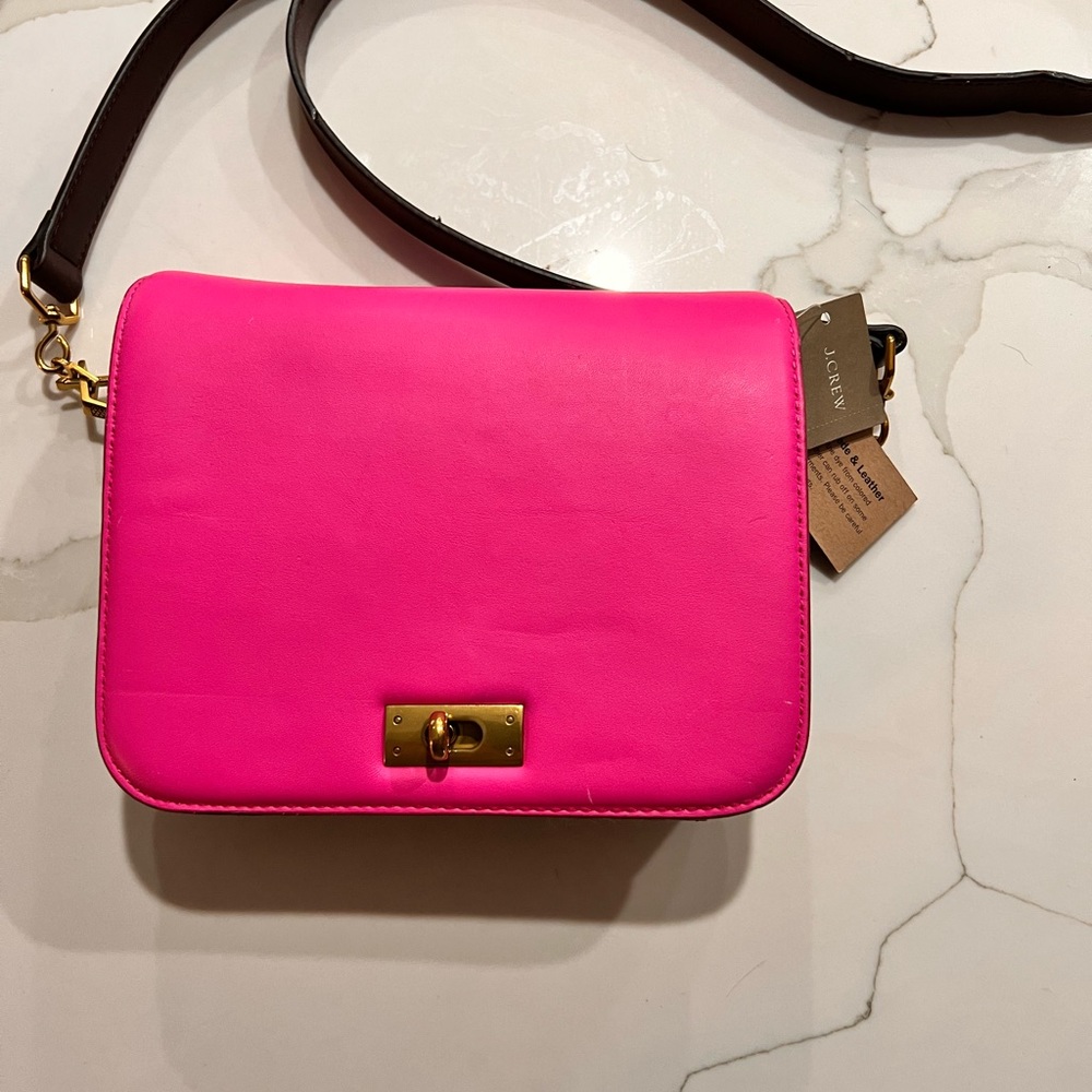 JCrew pink and brown leather purse with long strap. Can be shoulder or cross body. NWT