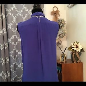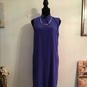 Beautiful jewel tone blue. Fully lined, lining is polyester. Hidden side pockets, and hidden front buttons. Security tag still attach.