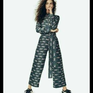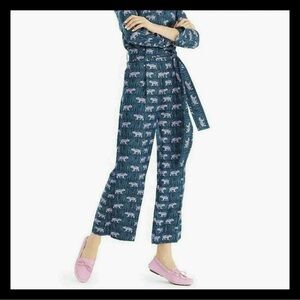 NWOT J.Crew 100% Silk Wide Leg Pant Jungle Print Purple Tigers Belted L2638 size 2