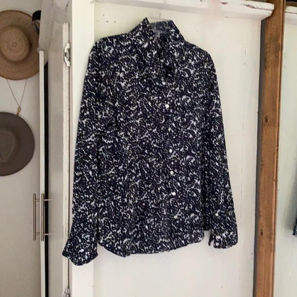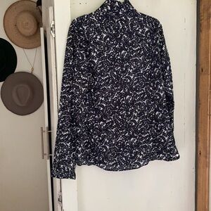 Black and white small leaf 🍃 print, button down shirt doesn’t show size fits a M/L
