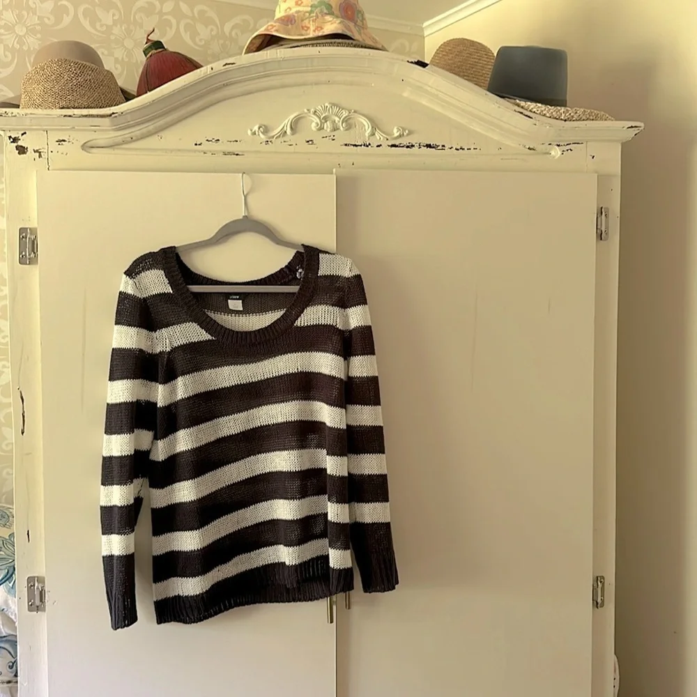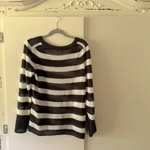 JCrew linen navy blue and white knitted long sleeve light weight sweater size M