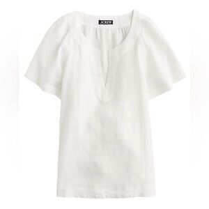 J.Crew $89.50 Flutter sleeve 100% linen V neck top, White