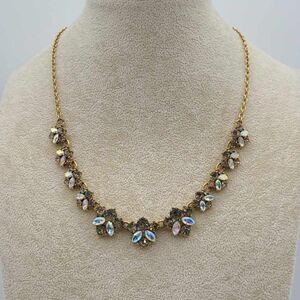 This necklace is in very very very good pre owned condition. It's a delicate statement necklace The drop is 1/2" Measures 17" with a 3" extender. Will work with so much in your closet.